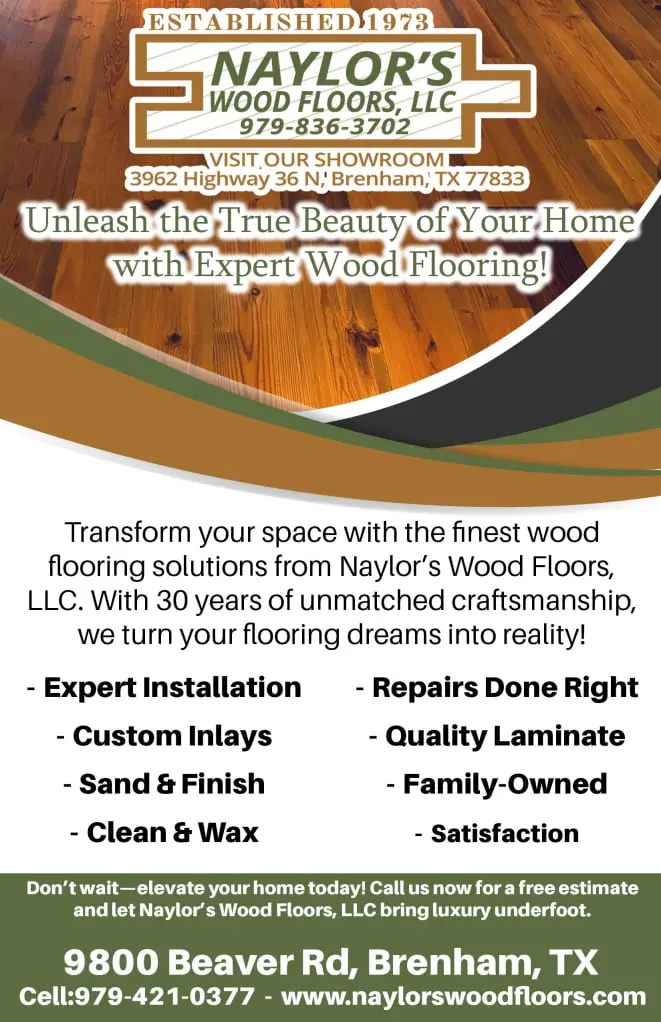Naylor’s Wood Floors, LLC is a family-owned wood flooring company serving Brenham, TX and surrounding areas for over 30 years. From new wood floor installation to sanding, refinishing, repairs, and custom details, our experienced team delivers precision workmanship and long-lasting results for homes and businesses alike.